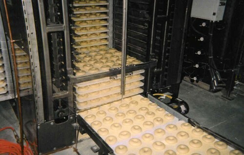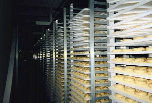 Rack Retarders lend themselves well to certain specialized products and processes. Bagel lines require long time periods for retarding and proofing. The slow-moving rack system is a natural for these applications. A continuous flow of dedicated pan/carrier is necessary for this equipment. Works well in a fully automated line but can also be used with manual loading and/or unloading.